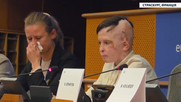 THIS is the tear-jerking moment a Ukrainian boy’s tragic tale prompts his interpreter to break down. Roman Oleksiv, 11, was sharing the story of how he lost his mum, Halyna Halina, and was left with life-threatening burns by a Russian hospital bombing during a speech at the European Parliament in Strasbourg.