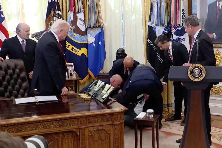 “Are you OK? Gordon, you OK?” asked Eli Lilly CEO David Ricks as the man began to fall over.  “Press out!” officials shouted as Trump rose from his seat at the Resolute Desk and Oz rushed to help.